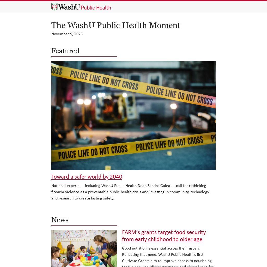 The WashU Public Health Moment is published by the School of Public Health Office of Communications. You can reach us at sphcomms@wustl.edu.